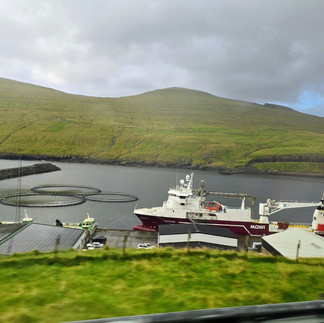So verbrachten wir auch die zwei Zwischenstopps auf den Färöer - Inseln gemeinsam. Diese 18 Inseln haben gemeinsam etwa die Fläche von Oberösterreich, haben allerdings nur 55.000 Einwohner, aber 70.000 Schafe. Die Sprache ist Feröisch, ein Norwegisch wie es vor hunderten Jahren die Wikinger gesprochen haben. Die Inseln leben gut vom Fischfang und der Zucht von Lachsen in Fischfarmen, die exportiert werden, die Einheimischen essen allerdings nur die selbst gefangenen Wildlachse aus den zahlreichen Flüssen und Seen. Jedenfalls ist das Land reich, und gönnt sich ein gutes Sozialsystem und verbindet die Inseln mit Unterwassertunneln, die teilweise bis 200 Meter unter der Wasseoberfläche liegen.