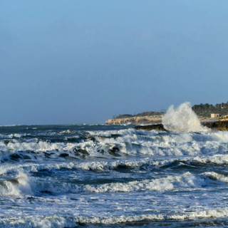 Meterhohe Wellen, die trotz vermeintlich bestem Wetter mit Schaumkronen und Gischt gegen Strand und Steilküste schlagen, sind nur ein Vorgeschmack auf den aufkommenden Sturm.